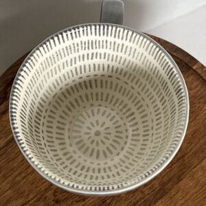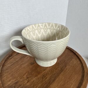 2 Signature Housewares Footed Stoneware 14 oz Mugs Diamonds Dots Lines & Zigzags