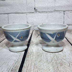 2 Signed Art Pottery Stoneware Pedestal Mugs