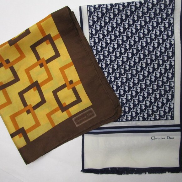 Authentic French Designer Christian Dior silk scarfs. Hand rolled hems.