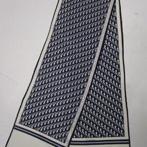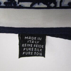 2 Silk Scarfs Logo Navy Oblong Rolled Hem French Designer