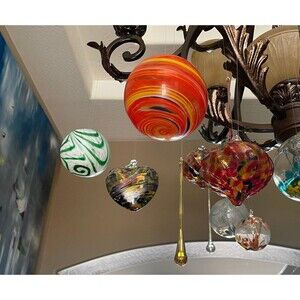 Each piece is a one of a kind, handmade creation. The gazing ball you receive may vary slightly from the photo but will be the same colors - no two are exactly the same!