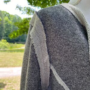 Stay stylish and cozy with this trendy Sisters Size Medium Gray Asymmetrical Moto Raw Hem Full Zip SweaterJacket. The asymmetrical design and raw hem details add a touch of edginess to this classic gray sweater jacket. Perfect for layering over your favorite outfit, this medium-sized jacket is a must-have for any fashion-forward wardrobe.