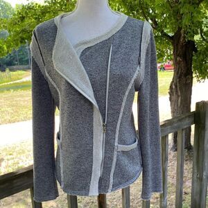 2 Sisters Size Medium Gray Asymmetrical Moto Raw Hem Full Zip SweaterJacket