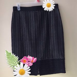 Spring is in the air & these skirts are a perfect addition to a wardrobe. Both are pencil style with hidden zippers. The magenta skirts zipper is on the side w/eye hook closure & a working zipper pocket at the front waist. The pocket is approximately 4.5"x 5". Laying flat measures Waist 16" x 18.5" Length. Black skirt is macrame w/rear slit and elastic waist w/zipper. Waist 15.5" Length 23" Both skirts are size 8. EUC