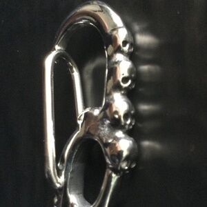These skull clips are casted from the highest quality 316 stainless steel.  They have a high polish finish, black enamel detail, good solid spring tension and measure 4.1 x 1.8 cm, 1.6 x 0.7  inches.  They are intended for DIY applications like chain wallets, key chains, jewelry, clothes and luggage and not for use in climbing applications.  Listing is for two clips.  See our other listings more variants of these clips.