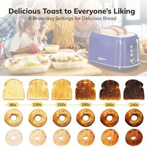 Delicious Toast to Everyone's Liking: No need to worry about what to eat at breakfast to satisfy all family members. With 6 browning settings, 2 slice toaster can make almost every level toasting and satisfy all family members' tastes.Thus you can enjoy precious breakfast time with your family.