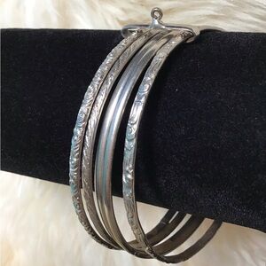 2 Smooth 3 embossed silver-tone connected bangles totaling 2.75”