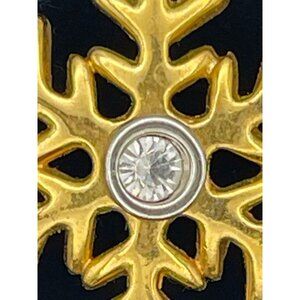 2" Snowflake Brooch Gold Tone Clear Crystal Rhinestone Center Holidays