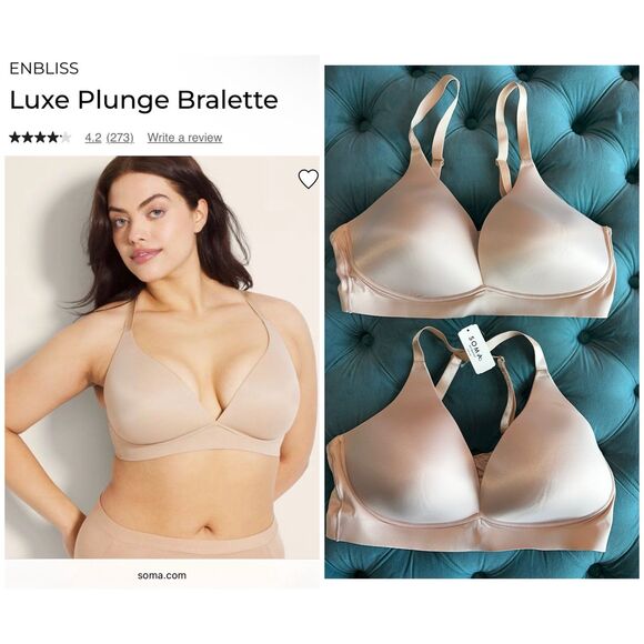 2 Soma Embliss Luxe Plunge Bralette Wireless Bra Bundle One NWT size XXL Nude