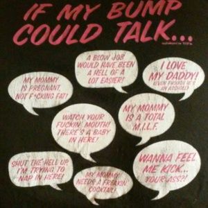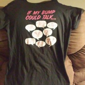 This is a pink maternity shirt and a black maternity from Spencer's. They are one size fits most shirts. They are really streachy. The pink shirt has one stain on it that you can see in the picture. They are very comfortable and soft.