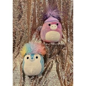 Add these adorable Squishmallows to your collection! Meet Jerry, the teal hedgehog, and Willow, the purple pegasus with hair. These soft and cuddly plush toys are perfect for all occasions and are washable for easy maintenance.