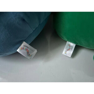 Jazwares Squishmallows Blue Puff Penguin with Wreath and Santa Hat and Green Squishmallows Zumir The Peppermint Moose soft stuffed animal toys
