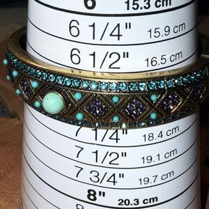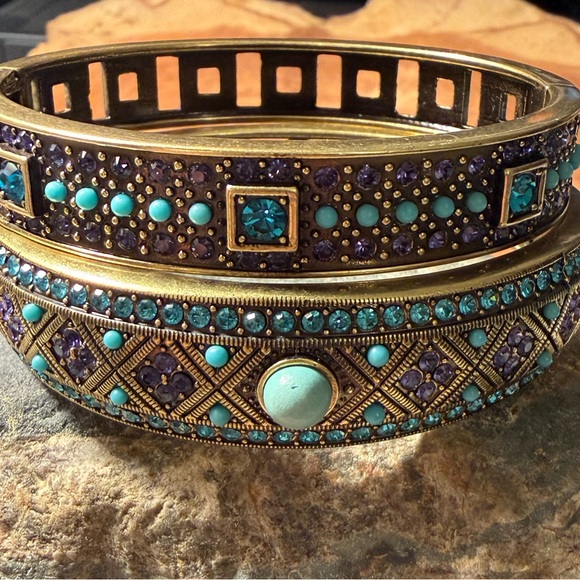 Set of 2 Gold Copper Hinged Bangles with beautiful Swarovski stones. Both stamped Heidi Daus. Wear one or both at the same time. Excellent condition. 6 1/2”