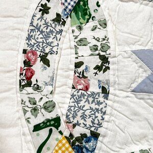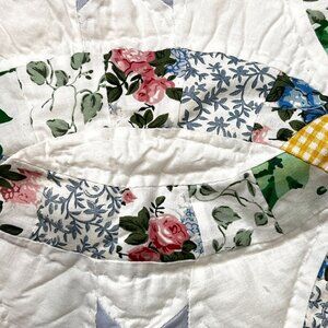 This pair of hand-stitched pillow shams features a classic double wedding ring pattern, adding an elegant touch to any bedroom decor. The intricate patchwork design showcases a variety of floral and checkered patterns, lending a timeless and sophisticated look. Crafted with quality materials, these shams offer both comfort and style.