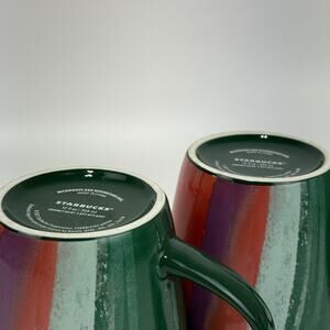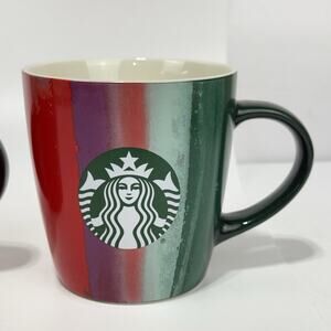 2 Starbucks Holiday Christmas Coffee Mug Red Purple Green Brushstrokes 12 Oz