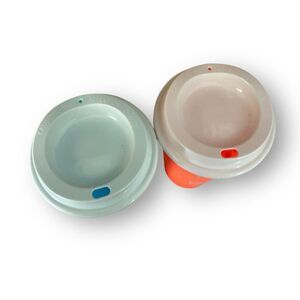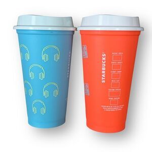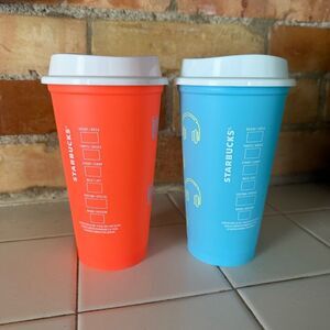 2 - Starbucks Reusable Grande 16 oz Hot Cold Cup Cups Bright Orange Baby Blue