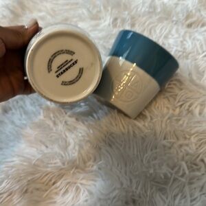 2 - Starbucks TAZO Tea Mugs - Blue & White - 2012 - Angled Rim - New Bone China