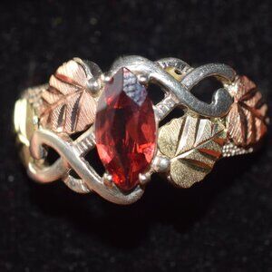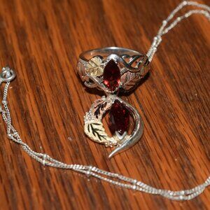 2 Sterling Garnet 12k. Black Hills Gold Necklace Ring Set January Birth Stone