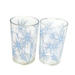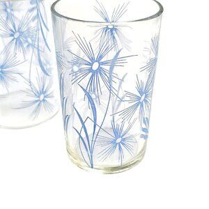 2 Swanky Swigs Blue Flower Juice Glass 6oz Midcentury spike floral wildflower MC