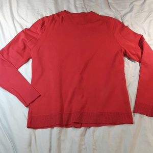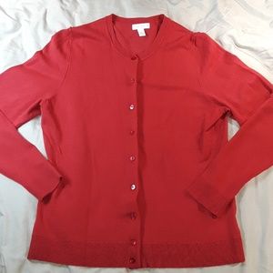 This is for 2 Sz. Large Sweaters. 1st, is A red sweater by Charter Club that is 70% Rayon and 30% Nylon. This sweater has 9 buttons. 2nd, is A Green sweater by Ann Taylor that is 55% Cotton, 25% Modal, and 20% polyester. This sweater has 8 buttons. Both sweaters are in great condition.