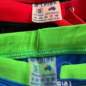 🔥 Duo Deal! Like New TRIBE Swim Trunks - Black/Red & Blue/Neon