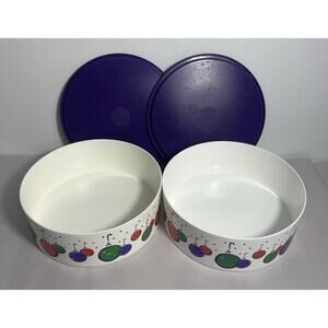 2 vintage Tupperware #3421 Food Storage One Touch ornament Cookie Canister Purple