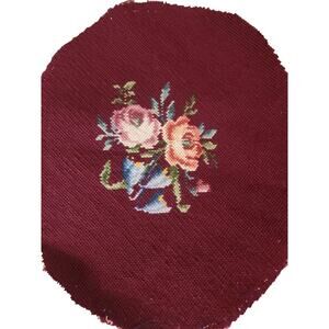 Two beautiful, OLD, Hand-made, Floral needlepoint chair covers. One is Oval and the other is square. Both a beautiful shade of Burgundy! In very good condition for their age. Please see all photos and zoom in as they are part of my description. Thanks