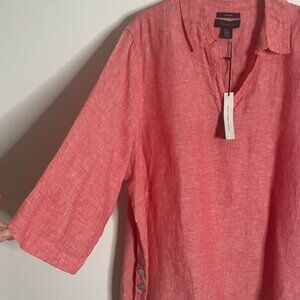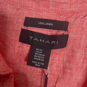 (2) Tahari linen tunic tops blouse 3X blue/peach women's NEW