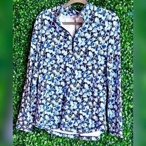Blue Multi Colored T by Talbots with zipper workout long sleeve T-shirt different shades of blues from navy to light Tiffany blue 59% cotton 36% modal 5% spandex