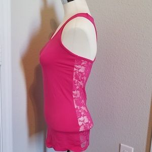 Women's Blk & White Stripe Tank Top XL Women's Pink Tank Bozzolo L With Sheer Lace Back With Pink Rose Pattern