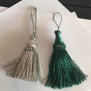 2 Tassel with Fringe 7.5" Green & Silver Color For Curtains or Other Decor