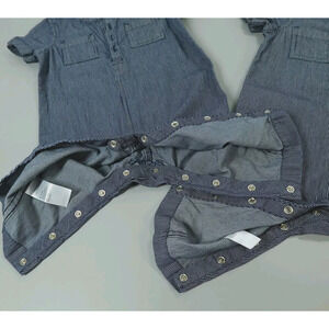2 Tea Collection Railroad Romper Jumpsuit Baby 9-12 Month Boy Girl Blue Striped