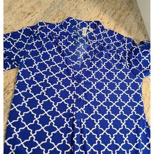 2 Tecera Size Small Dresses Blue White 3/4 Sleeve Roll Tab Chevron Arabesque