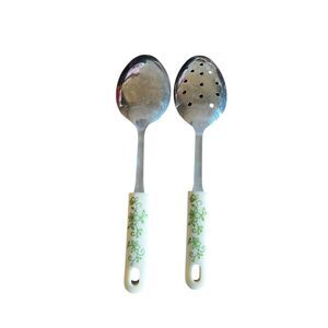 2 Temp-tations Presentable Ovenware by Tara Slotted Spoon Serving Green White