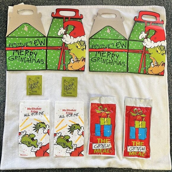 (2) The Grinch Meal Box McDonald’s Happy Meal 2025 Complete Sets Mystery Socks