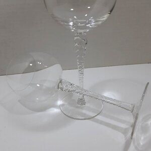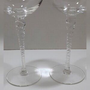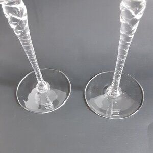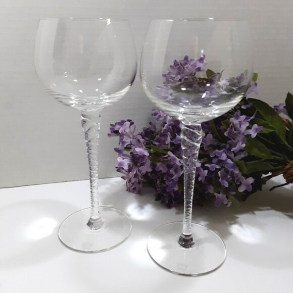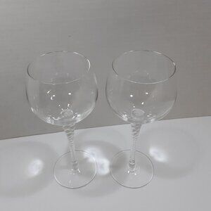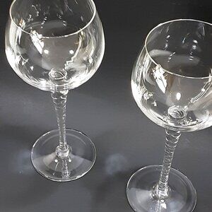 Two wine goblets in the Holiday Pattern by Thomas Crystal. Clear with twisted stem, no trim. Signed Thomas Germany on base. This discontinued pattern was manufactured from 1989 until 2000.