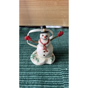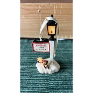 2 Thomas Kinkade 2001 Mini Xmas Ornaments Snowman and Xmas Lamp post with cat