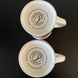 This set of 2 vintage mugs includes both Thomas Kinkade’s "Hometown Bridge" and “Stepping Stone Cottage”. Each mug is artfully wrapped with his beautiful images. Comfortable "C" shaped handle. Thomas Kinkade Studios logo on bottom of each mug, 2003.