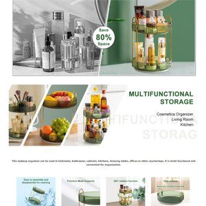 Edicc: 2 Tiers - 360° Rotary - Turntable Makeup Organizer - Lazy Susan Cosmetics Storage - Storage for Perfumes/ Cosmetics/ Make-up Brushes/ Skincare - Bathroom Countertop Organizer (Green)