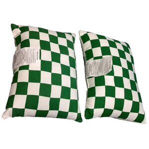 • Two green & white checkerboard pillows