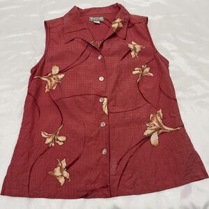 2 Tommy Bahama 100% SILK Sleeveless Hawaiian Shirt Floral Tropical Button S
