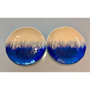 Gorgeous Set of 2 Tommy Bahama Melamine Watercolor Salad Plates Blue/Aqua Beach House Table