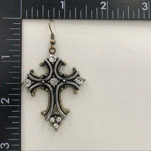 🌼 2- Tone Gold Silver Rhinestone Cross Dangle Earrings