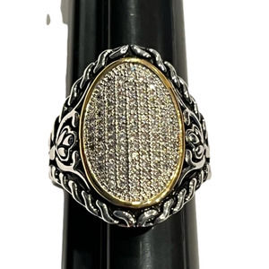2 tone Pave Cocktail Ring Sz 8. NWTs. center measures approx 3/4”long with Filligree sides. Smokefree home