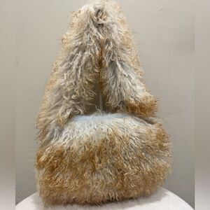 One of a kind. Chic design. Handmade from real Mongolian lamb fur, beautiful dyed 2 tone color, full fur overall design. Includes an additional crossbody strap. Spacious enough for your phone, wallet, cosmetics, compact umbrella and other items. It's very fluffy & light weight, perfect for casual wear, or a gift for an important someone.