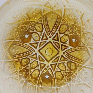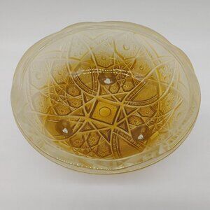 2 Toned Amber Depression Glass Round Mid Century Modern Footed Serving Bowl VTG