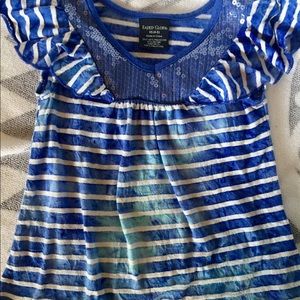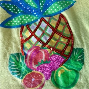 2 Sequin detail, little girls tops. Gently used, in great condition. BLUE STRIPED TIE-DYE w/ Sequins on the front chest. YELLOW PINEAPPLE w/ sequins on the fruit. Both size 4/5 Get the bundle for your little princess. .... FREE Gift w/ purchase for mom or dad. Send me a message to let me know if you’d like the free gift for Man or a woman.