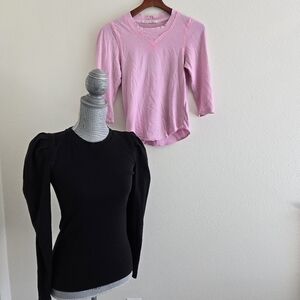 2 Tops Free People Puff Shoulder Black Top and Pink top as a Bonus size XS