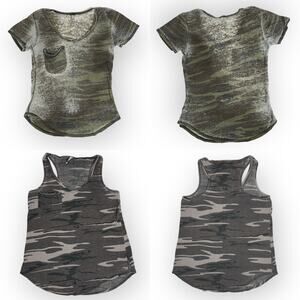 2 Tops Z Supply (M) Camo Pocket Tee & Pocket Tank Camouflage Green Grey