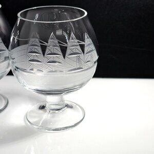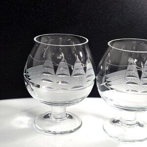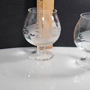 2 Toscany Clipper Ship Brandy Glasses 3.5" small etched crystal Italy nautical s